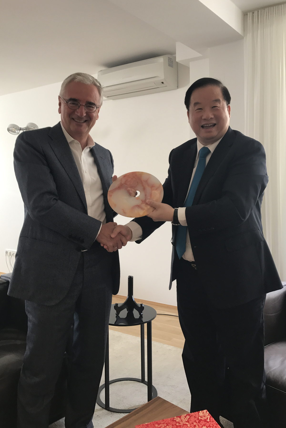 9月25日,德意志銀行主席保羅·阿赫萊特納在德國慕尼黑會見新華聯集團董事局主席兼總裁傅軍。雙方就加強新華聯與德意志銀行的合作進行了深入交流與探討。集團國際發展部總監楊云敏參加會見。 德意志銀行成立于1870年,是德國最大的銀行和全球知名金融機構,主要從事商業銀行與投資銀行業務。截至2017年6月30日,德意志銀行的總資產達1.57萬億美元,凈資產712億美元,2017年上半年實現營業收入138億美元,凈利潤10.2億美元。