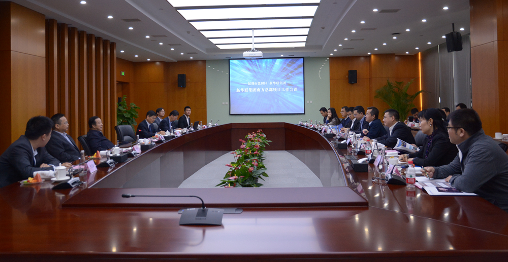 4月19日上午,深圳市鹽田區委書記陳清率隊到新華聯集團考察。集團董事局主席兼總裁傅軍接待了陳清書記一行。雙方就新華聯集團南方總部落戶鹽田及相關重點產業遴選推進情況進行了座談。