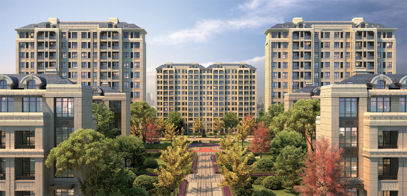 項目位于上海市青浦區,總建筑面積10.6 萬平方米,擁有7 棟小高層公寓、16 棟疊加別墅和完善的健身、休閑、娛樂等設施,為高端法式低密度生態小區。